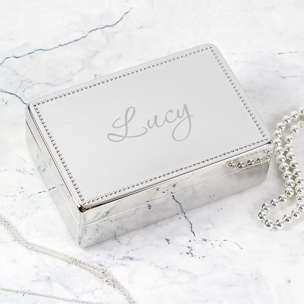 Personalised Name Rectangular Jewellery Box With 1 Gift Customisation Field And Express Delivery Options .